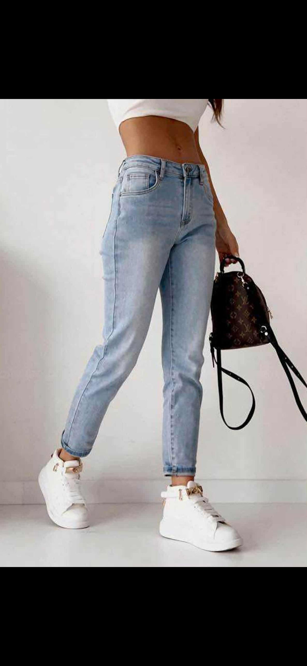 Blue High Waist Wide Leg Jeans With Pleat Front
